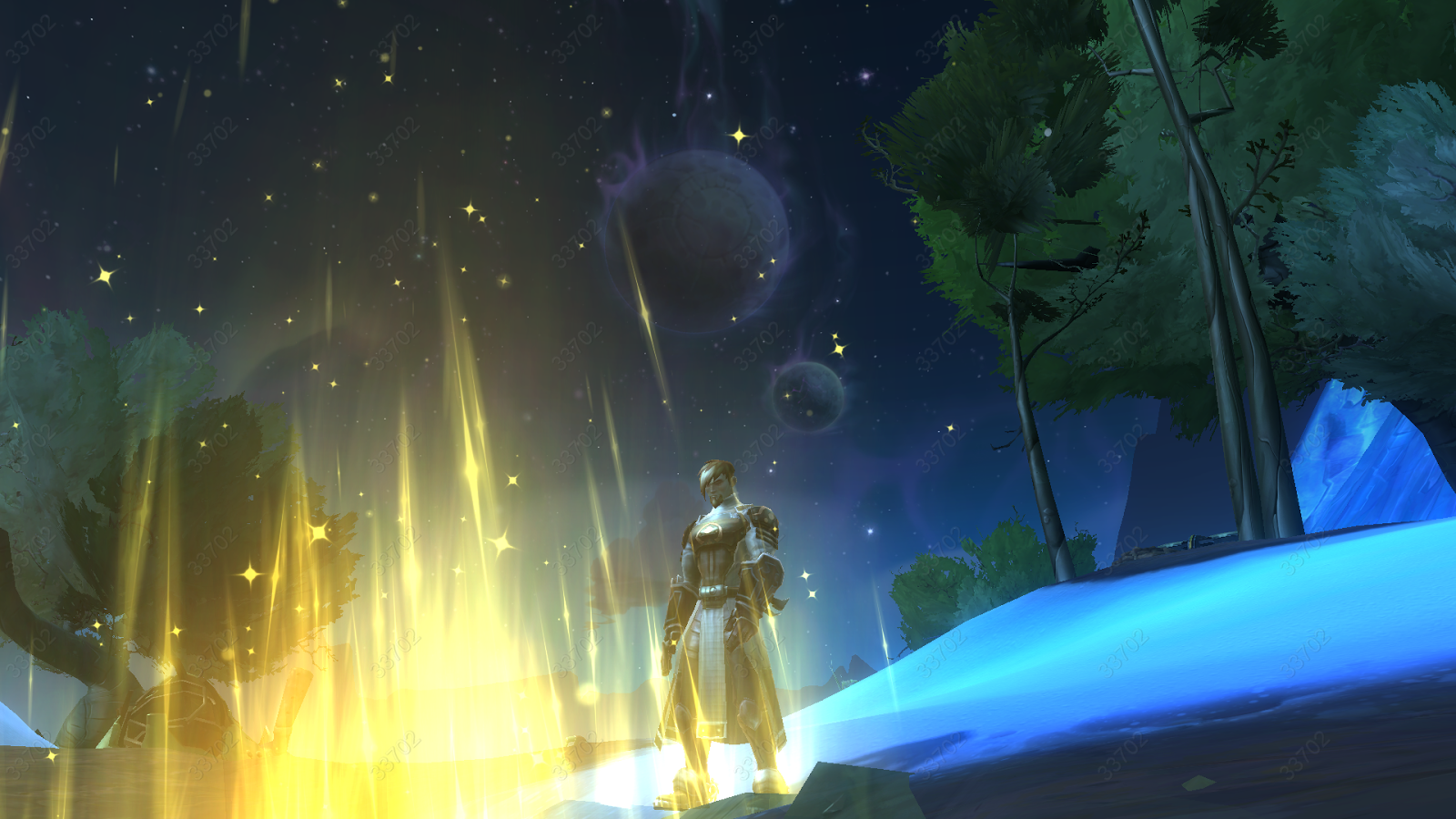 Inspecting an Eldan relic site under the beautiful night sky of Whitevale
